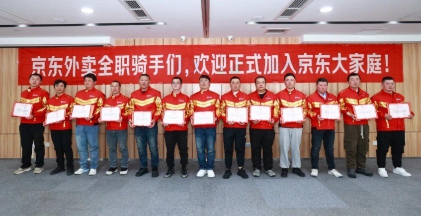 2月28日,京东与首批京东外卖全职骑手代表举办签约仪式。